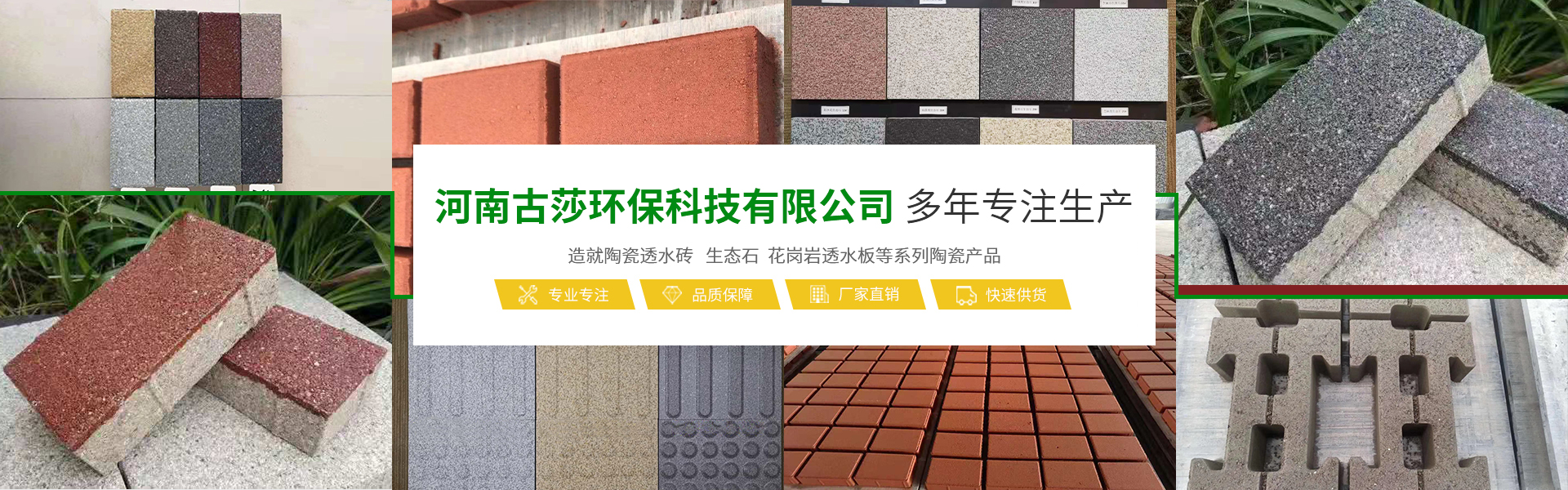 河南古莎環(huán)??萍加邢薰究傋溆诮煌屑~城市鄭州,是一家具備研發(fā)、生產(chǎn)、銷售能力為一體的綜合性現(xiàn)代化陶瓷企業(yè)。本公司專業(yè)生產(chǎn)經(jīng)營生態(tài)陶瓷透水磚、生態(tài)鋪石、PC仿石材透水磚、PC仿石材景墻磚、普通透水磚、燒結磚等系列產(chǎn)品,完善的研發(fā)團隊,完善的生產(chǎn)流水線設備,打造完善的陶瓷企業(yè)。古莎環(huán)??萍棘F(xiàn)代化陶瓷企業(yè)是美化城市,改善生活環(huán)境質(zhì)量的生態(tài)環(huán)保產(chǎn)品,可廣泛應用于公共建筑廣場、城市道路、公園、藝術景觀、廊道、房地產(chǎn)、別墅住宅小區(qū)、地鐵口、車站、高速公路服務區(qū)等。古莎環(huán)??萍荚谠刑沾善髽I(yè)基礎上,另拓展園林綠化、市政施工、瀝青包工包料施工、公路維修等業(yè)務板塊,專業(yè)培訓了一些園林綠化、市政施工技術人員,并有多年的施工養(yǎng)護經(jīng)驗以及建筑工程經(jīng)驗。保證市政工程施工質(zhì)量以及園林綠化后期養(yǎng)護規(guī)范化、專業(yè)化。古莎環(huán)??萍妓裱钠髽I(yè)與品牌發(fā)展思路,是奠定在品質(zhì)與產(chǎn)品應用之上。環(huán)保理念由我們共同倡導,理性思考,以推進步,感性溝通,以共建優(yōu)越。古莎環(huán)??萍寂c大家真誠合作,攜手共進,為助力海綿城市建設,建筑高品質(zhì)的綠色城市生活貢獻一份力量!